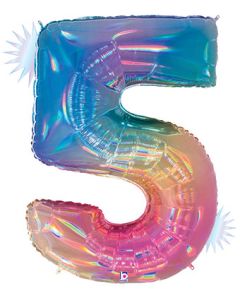 Megaloon Number 5 Opal Rainbow 34 Inch Foil Mylar Balloon [15845RW]
